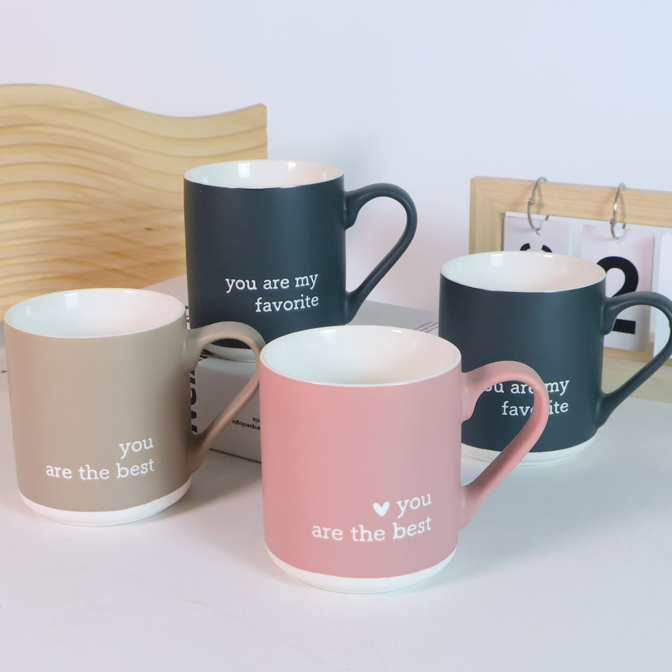 Mug à café en céramique émaillée bicolore avec motif résistant à la cire, mug personnalisé de couleur mate avec impression sur soie