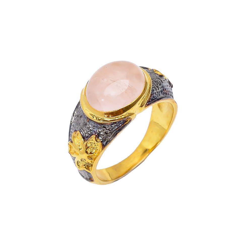 Bague en quartz rose bicolore faite à la main bijoux en argent sterling 925 avec bague de mariage en pierre précieuse plaquée or rhodium en gros pour elle