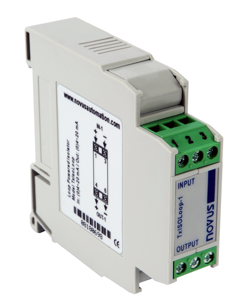 NOVUS Automation TxIsoLoop-2 Isolateur sur rail DIN à boucle alimentée haute précision Entrée/sortie 4-20 mA (2 canaux) Équipement électrique