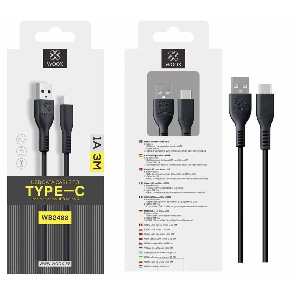 Câble noir 3m Type-C 1A-Solution de charge efficace