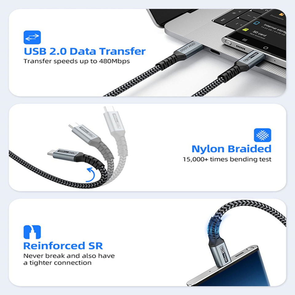 Câble Type-C Câble USB C 240W 5A PD 3.1 Charge rapide Personnalisé 1m 2m 3m Haute qualité Nylon tressé Chargeur de données USBC vers USBC