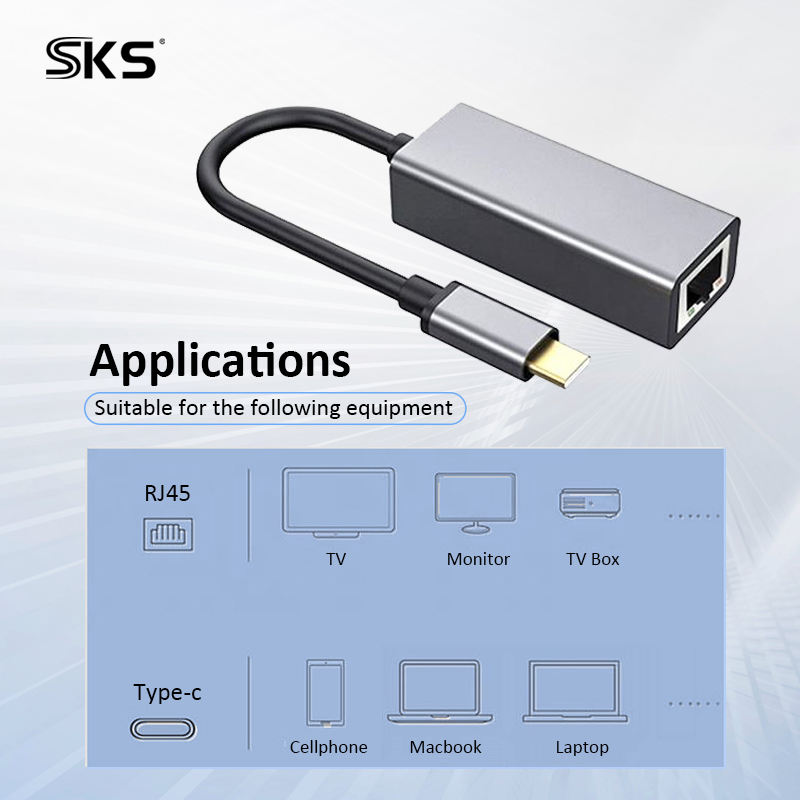 Adaptateur Ethernet Gigabit Type-C RJ45 10/100/1000Mbps USB 3.1 avec puce RTL8153 en alliage d'aluminium pour MacBook/Dell XPS/Windows/Mac OS