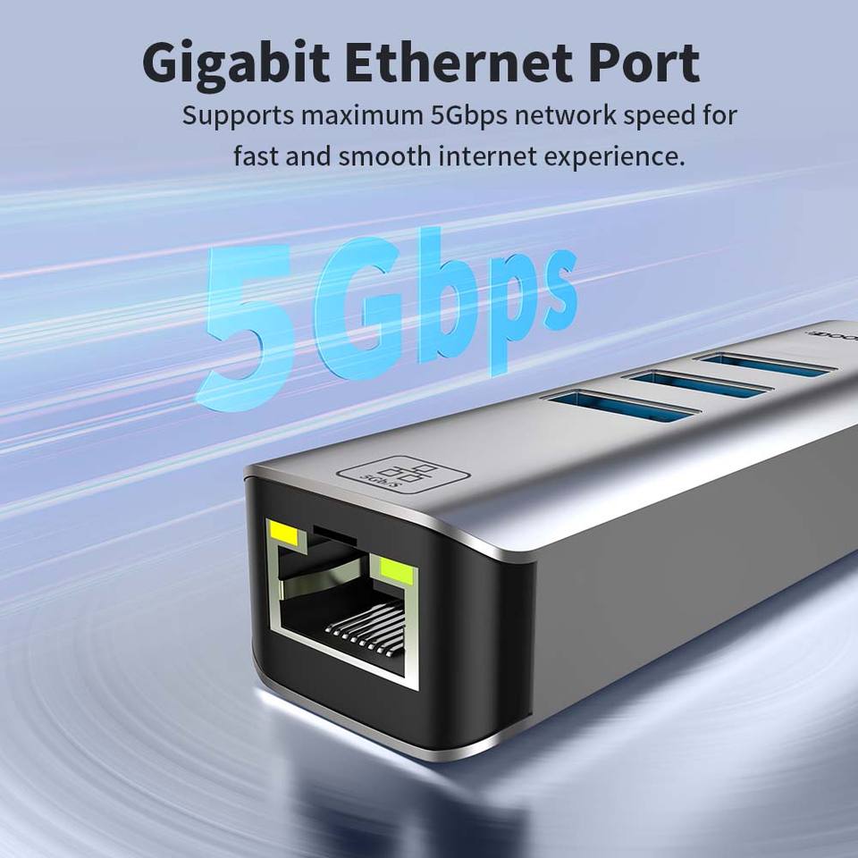 SélectionnerCouleur: Gris Type-C 3.1 3 ports USB3.0 Ethernet 5 Gbit/s