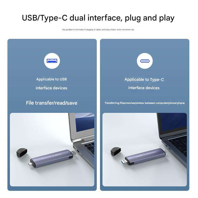 Boîtier externe pour disque dur SSD NVMe M.2, NGFF M.2, avec ports Type-C + USB 2-en-1