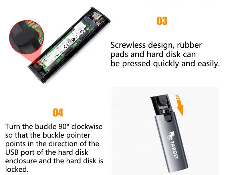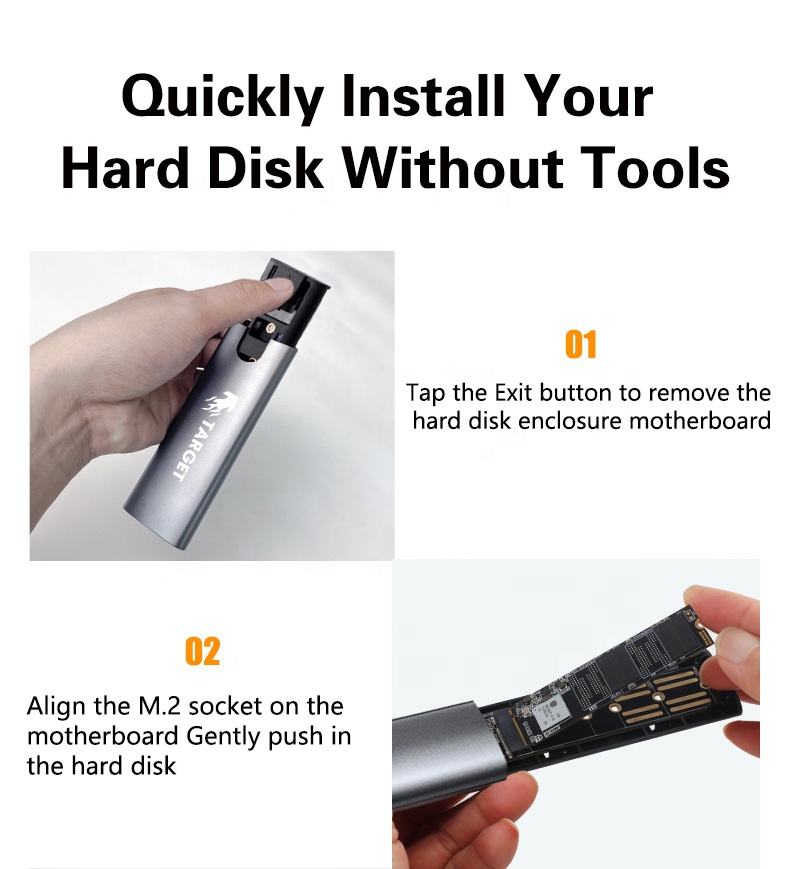 Type-C USB 3.0 Boîtier SSD externe en aluminium pour SSD avec boîtier SSD externe cible à coque dure