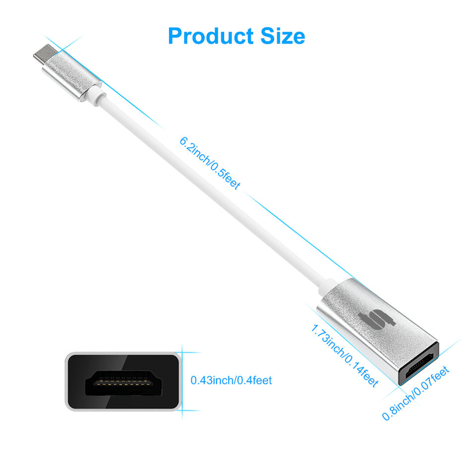 Adaptateur USB 3.1 Type C à HDMI femelle, miroir HD 4K, extension pour Mac, coque en alliage de Zinc, câble hub
