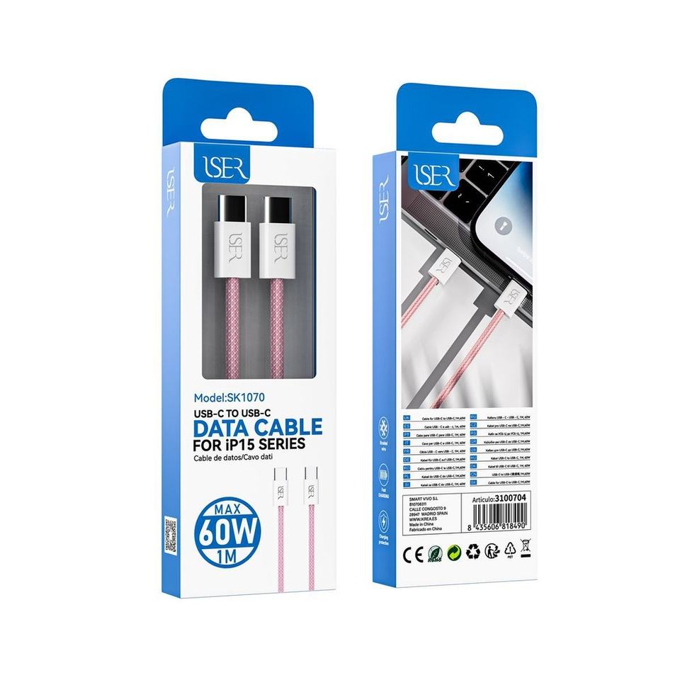 Câble de type C vers type C pour iPhone série 15 60W 1m Rose