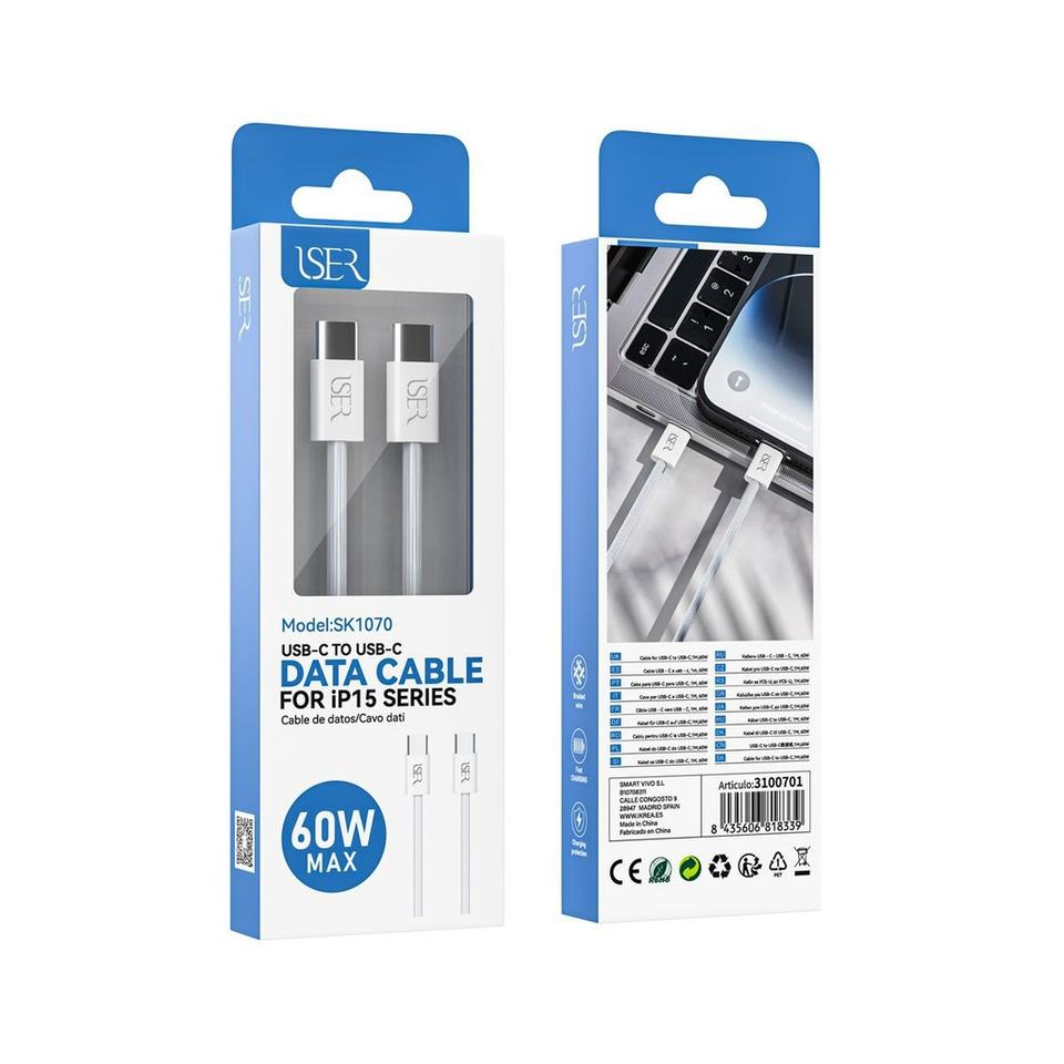 Câble de Type C à Type C pour iPhone 15 Series 60W 1m Blanc