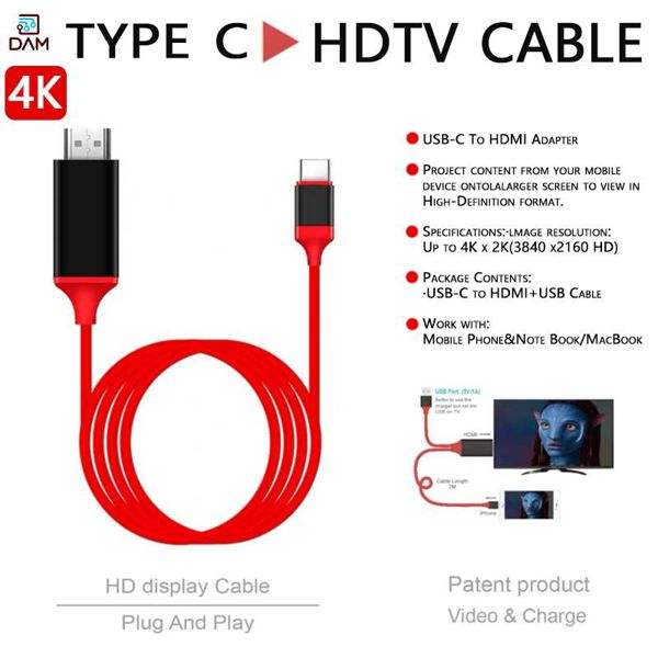 Câble adaptateur Type C mâle-femelle 4K avec gaine en PVC, blindage tressé, cuivre sans oxygène pour HDTV, téléphone, ordinateur portable, MacBook, Plug & Play