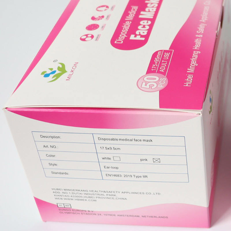 Masque chirurgical jetable de type IIR Medical Supply 3 PLY Earloop de couleur rose