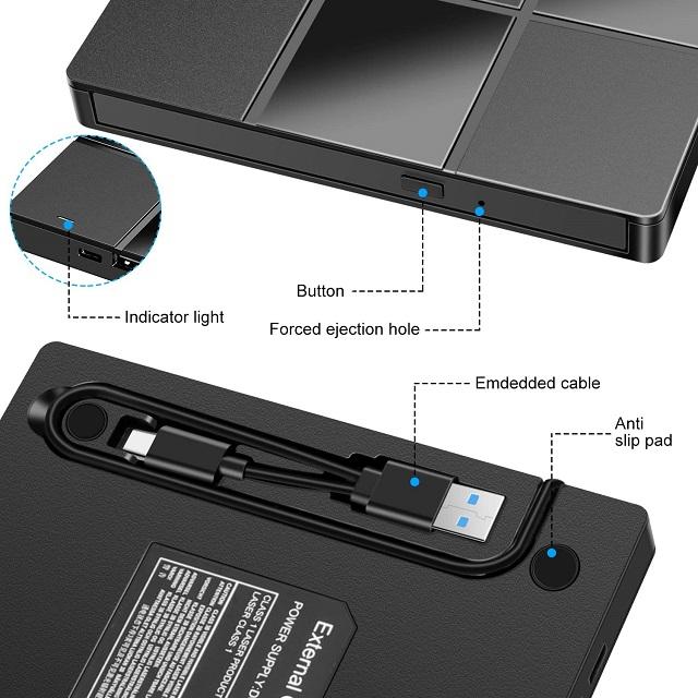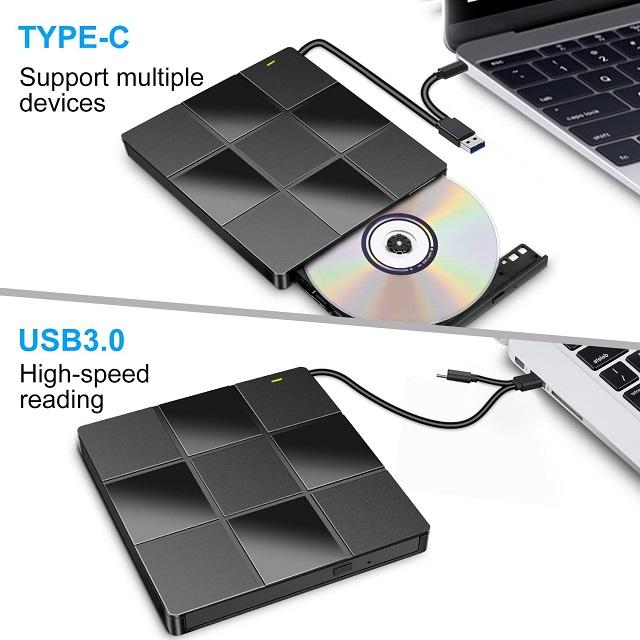 Lecteur DVD externe Type-c Plug and Play avec concentrateur USB lecteur de carte SD + TF pour MacBook Pro Air, Windows, Linux lecteur de CD externe