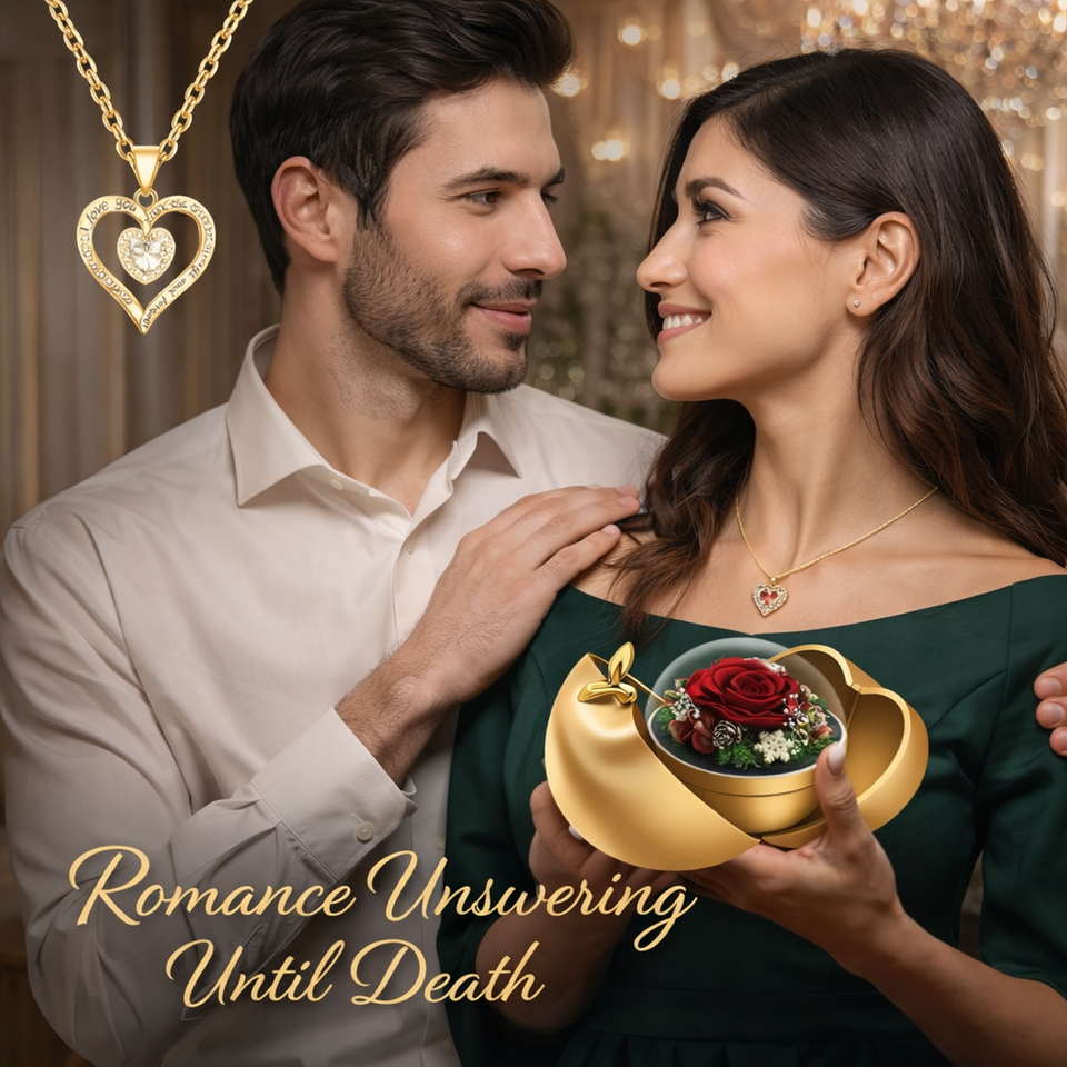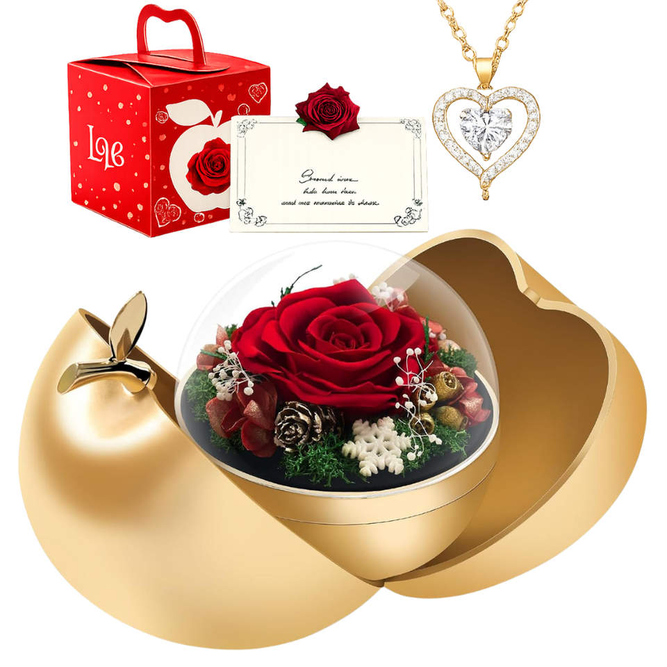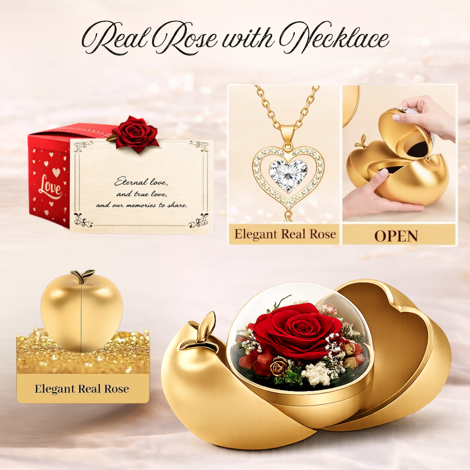 ELVROGEST SA Coffret Cadeau Rose Éternelle Préservée avec Collier Cœur Doré – Cadeau Romantique de Luxe pour Maman, Épouse, Petite Amie, Anniversaire, Saint-Valentin