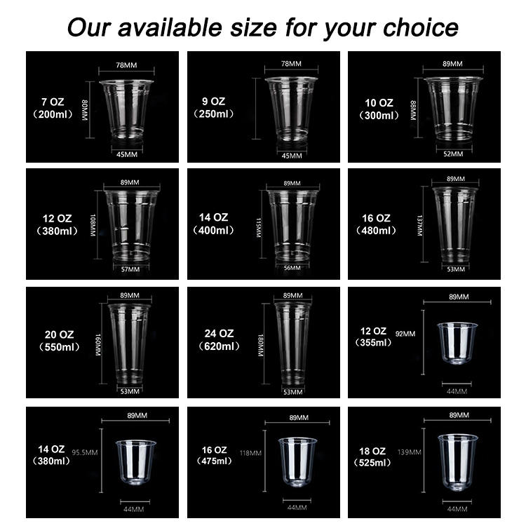 Gobelets à bulles jetables en plastique PET avec couvercle 500ml 700ml, gobelets transparents de qualité alimentaire pour thé au lait, desserts, boissons froides