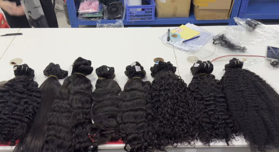 Matériel:Cheveux indiens crus, cheveux vietnamiens crus, cheveux cambodgiens crus