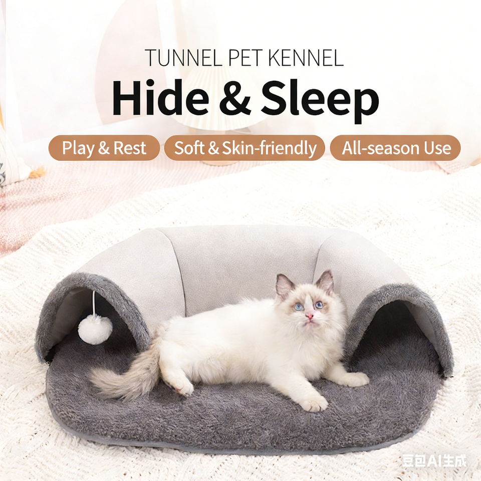 Tunnel pour chat en forme de U, nid pour chat avec jouet, maison pour chat en velours multifonctionnelle