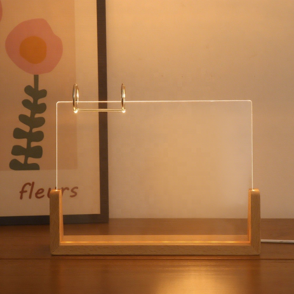 Forme de U Led bureau calendrier lampes Base Led acrylique en bois lit lumière 3d Photo cadre lampe pour bricolage