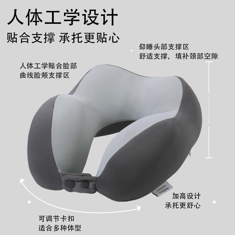 Oreiller de voyage en forme de U en polyester rafraîchissant pour avion, bureau, siestes – Gris, Noir, Bleu, Rose