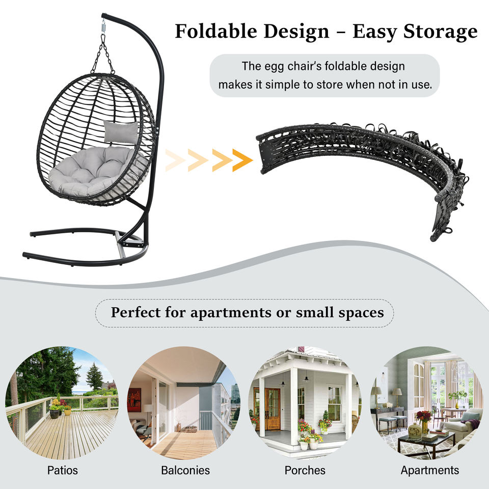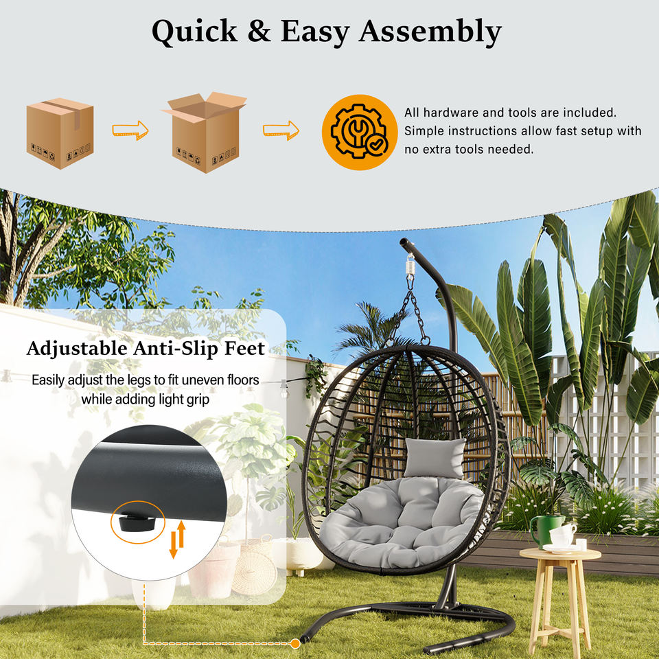 Fauteuil suspendu pliant en forme d'œuf, style U, pour une personne, en osier, avec pieds antidérapants réglables, pour intérieur/extérieur