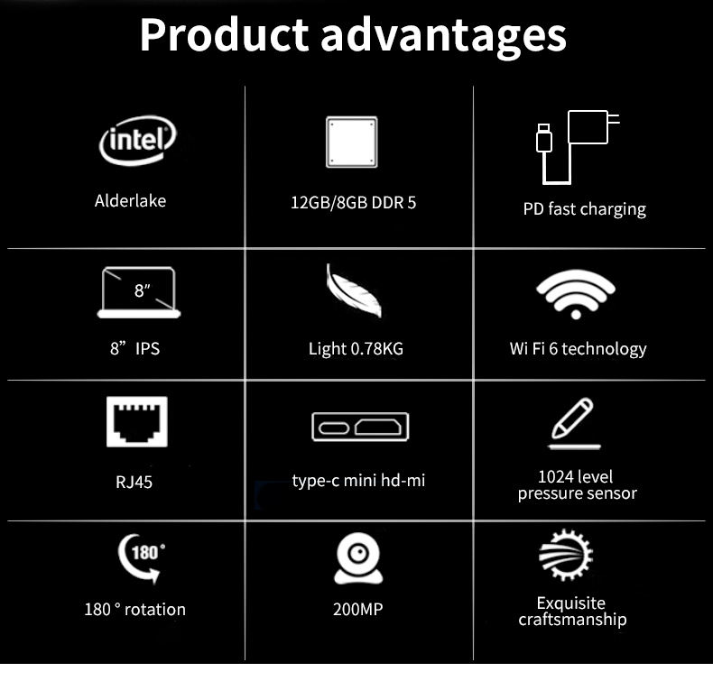 Nom:Ordinateur portable tablette 8 pouces
