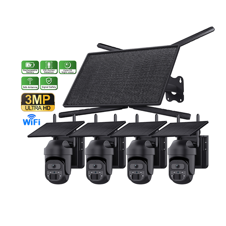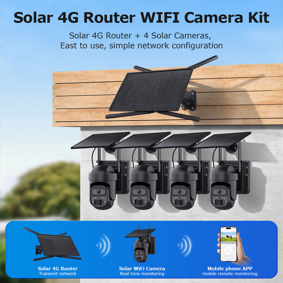 Kits de caméras WiFi et routeur solaire 4 canaux