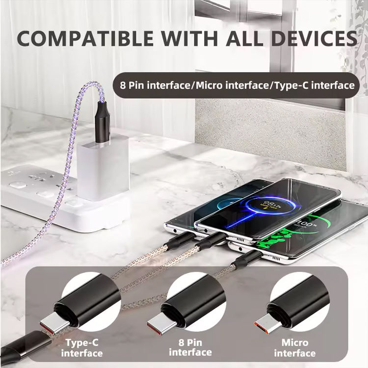 UC019 Led coloré universel 3in1 câble Usb 3A charge rapide câble Usb c pour chargeur de téléphone produits tendance 2026 nouveautés