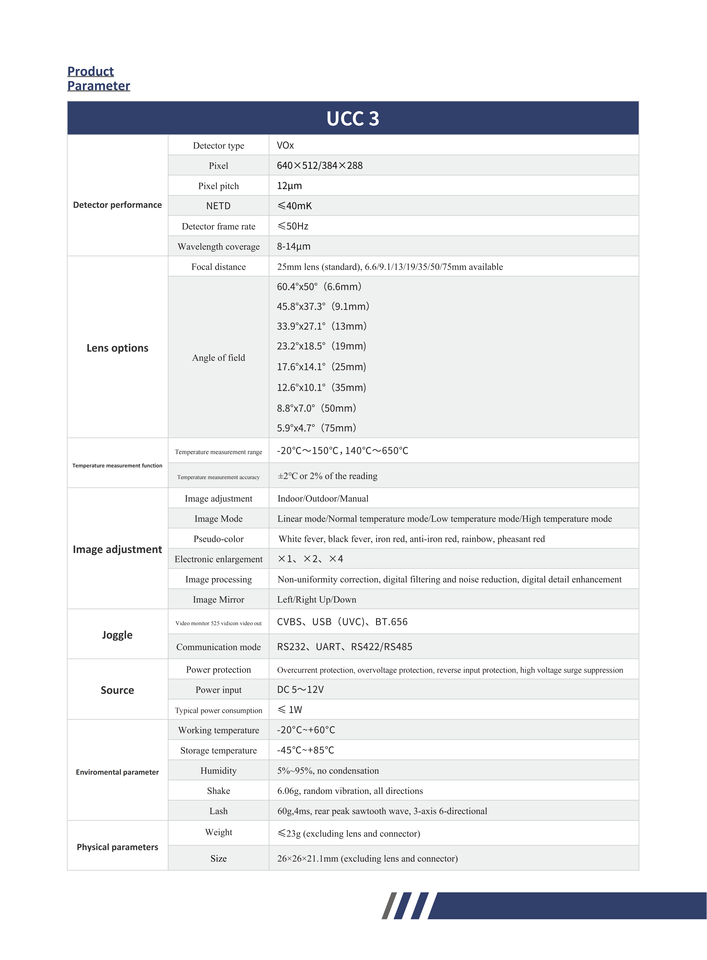 Caméra UCC3 UCC3-Movement pour Drone FPV, Voiture, Bateau, 640x512/384x288 pixels, 12m de portée, Distance focale optionnelle, Détecteur de type VOx, 50Hz
