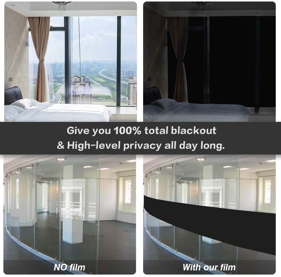 Film pour fenêtre UDK 100% occultant, film statique pour fenêtre, occultation totale, verre de confidentialité, film teinté pour fenêtre, autocollant noir pour fenêtre