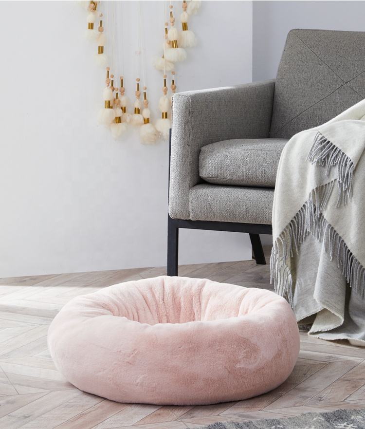 Lit d'animal familier de fourrure de Faux, lit de coussin d'animal familier, lit rond de chien
