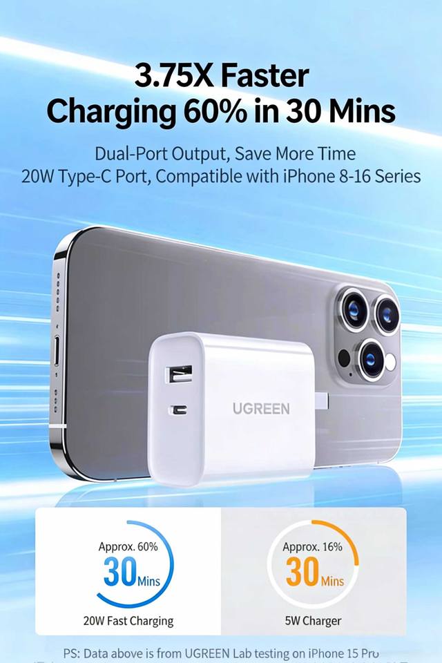 Nom du produit:Chargeur rapide UGREEN 20W à double port