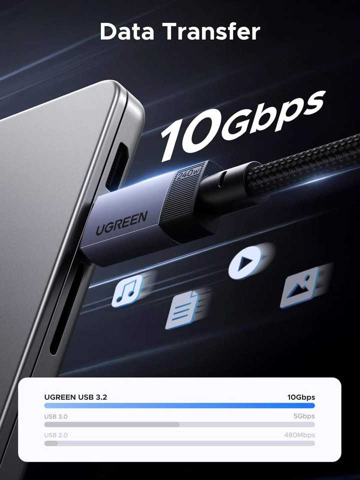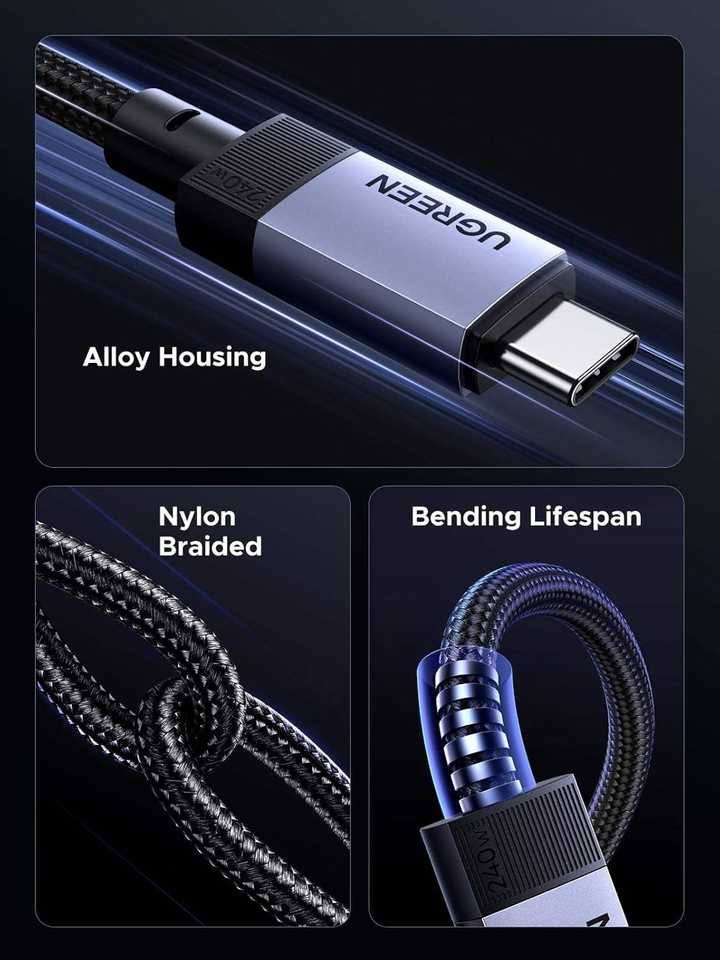 Câble USB C UGREEN 240W GEN2 10 Gbps 4K 60Hz Sortie vidéo 60Hz Charge rapide Câble de transmission de données 3,3 pieds USB3.2