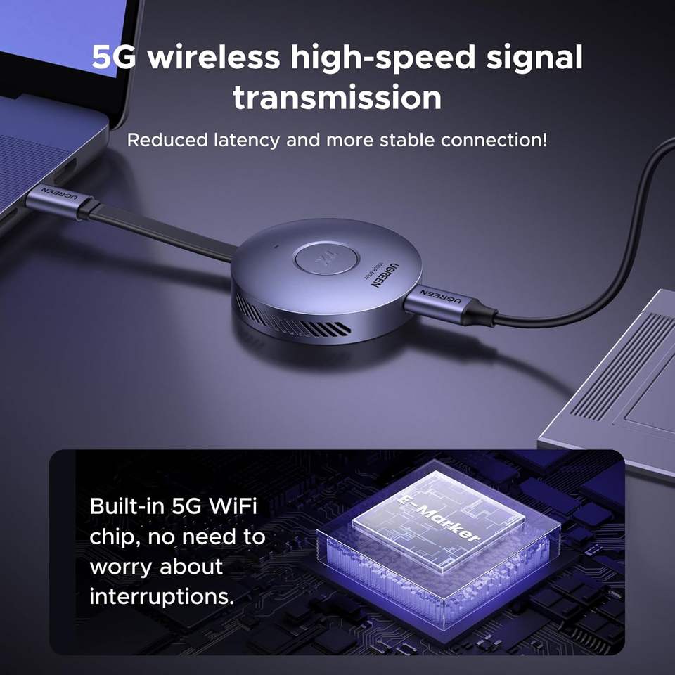 Émetteur sans fil magnétique USB-C et récepteur HDMI UGREEN, USB C vers HDMI 1080P60Hz Transmission 5G pour la diffusion de vidéo et d'audio