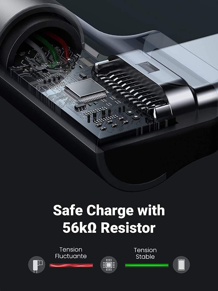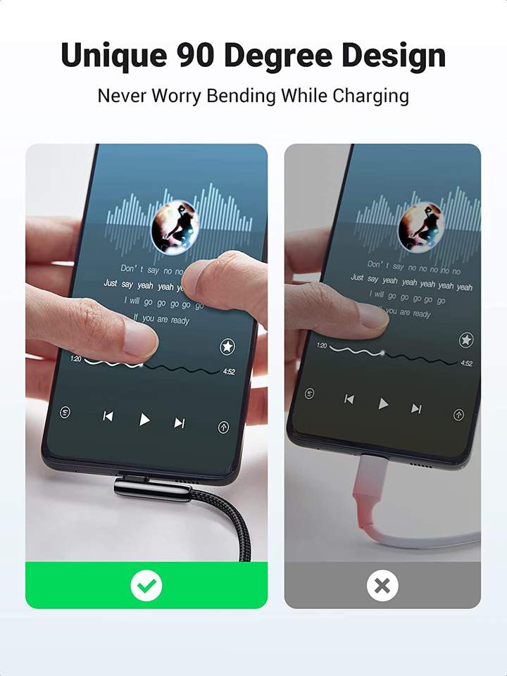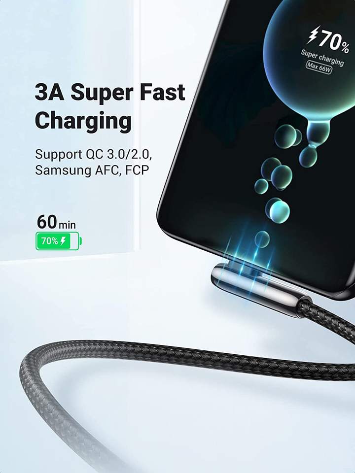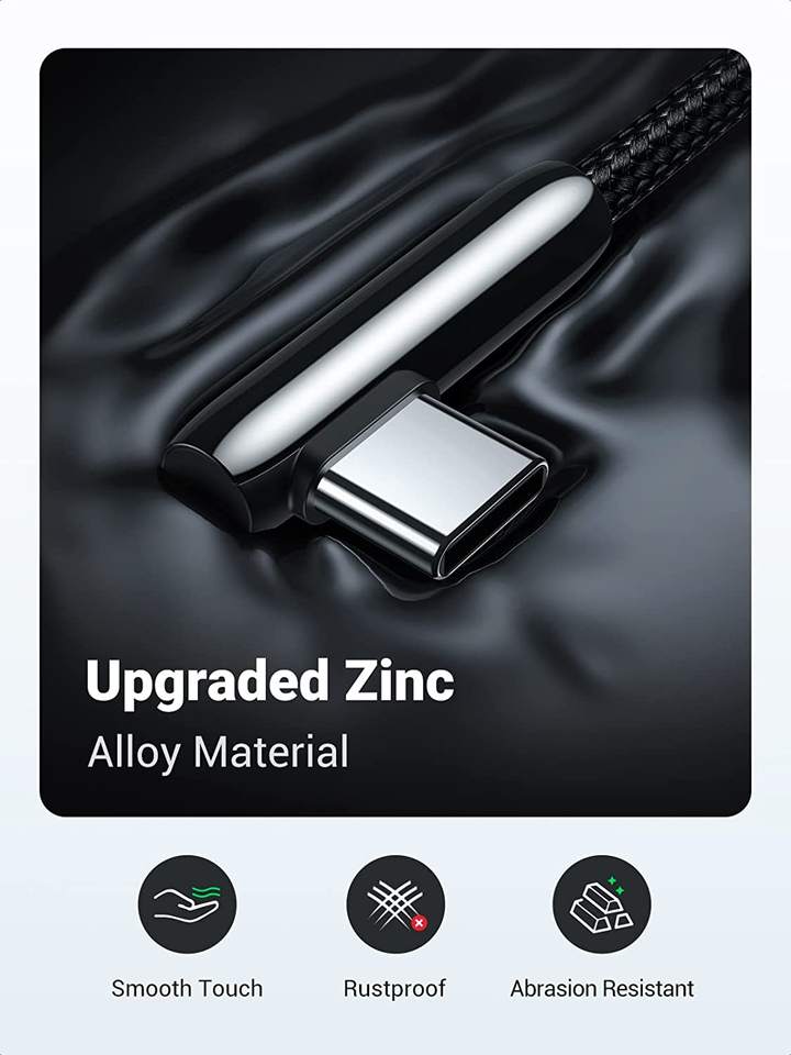 Câble USB C UGREEN US317 à angle droit Câble USB a vers USB C haute pureté en alliage de zinc Cordon tressé à 90 degrés de conception humanisée