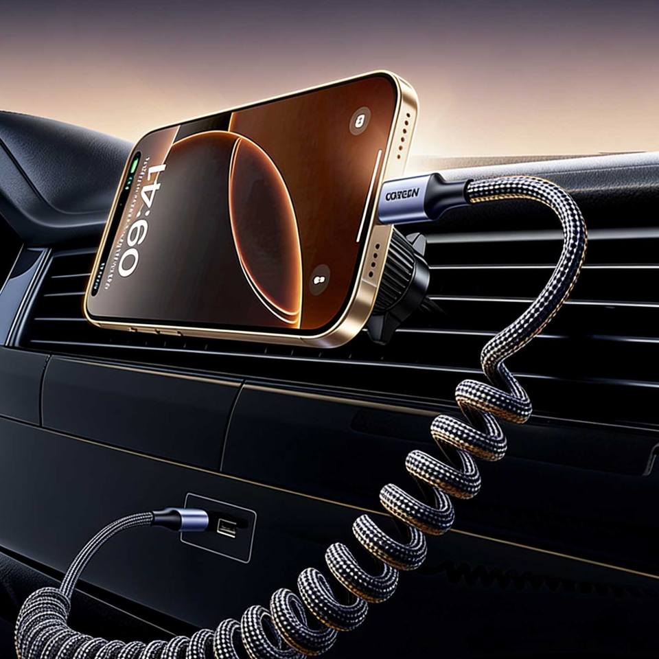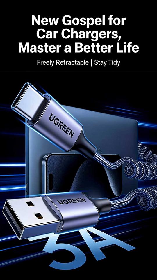 Câble de charge rapide rétractable UGREEN USB-A vers USB-C 20W pour appareils CarPlay et Android – Câble de synchronisation de données tressé de 1,5 m