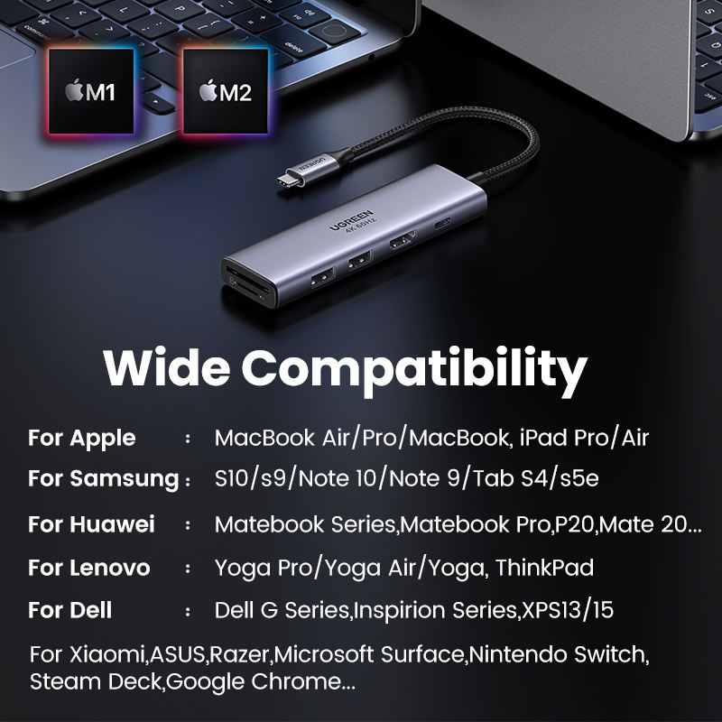 UGREEN Hub USB-C Type-C vers adaptateur HD 4K30Hz PD100W SD TF Dock USB-C 3.1 Splitter pour MacBook iPad Pro Air Huawei Hub USB 3.0