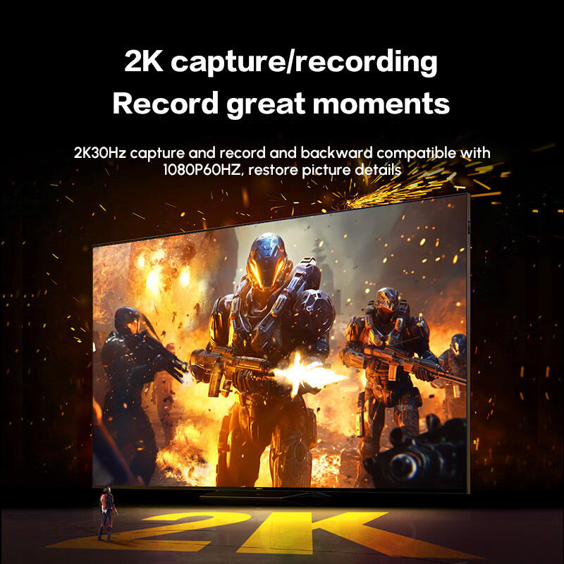 Carte de capture vidéo UGREEN HD-MI vers USB C Dispositif de streaming Capture 2K/30Hz Entrée 4K Enregistrement de jeu audio