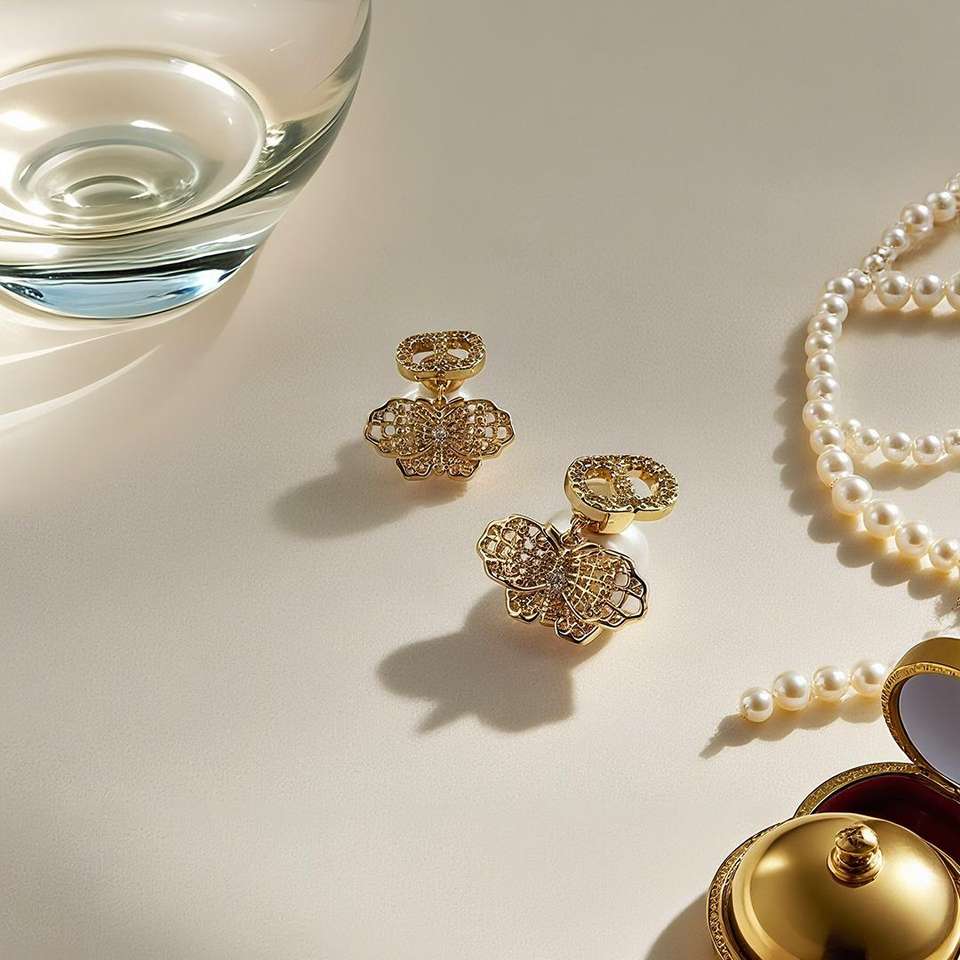 UGood 18K Plated Brass and Zircon Necklace with Butterfly Business and Party Crystal Earrings