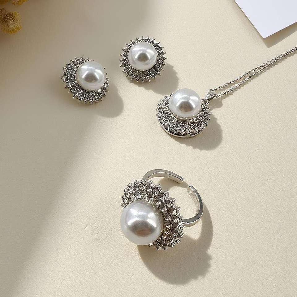 UGood Ensemble de bijoux en perles Flora forgé avec zircon et perle déclaration rehausseur esthétique pour les entreprises