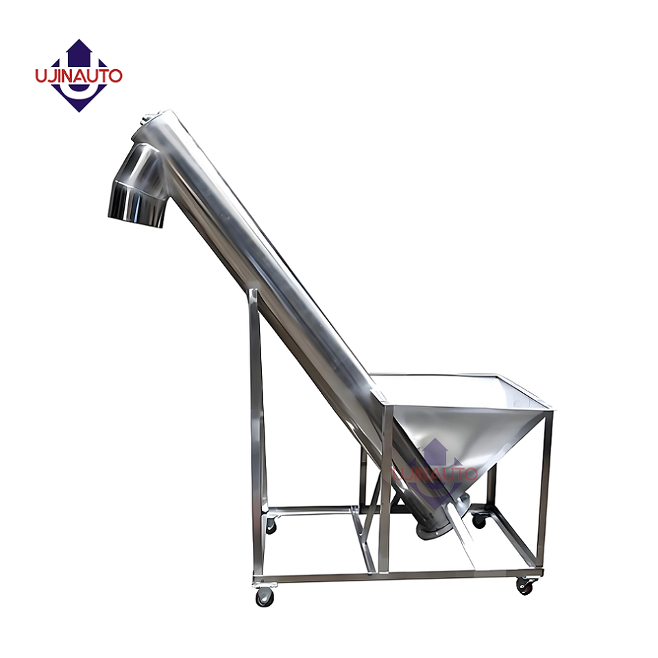 Convoyeur à vis en acier inoxydable UJINAUTO à vitesse réglable pour le déchargement de gros sacs, ligne de convoyage automatique, usine de fabrication