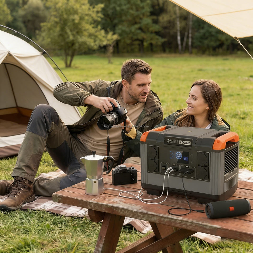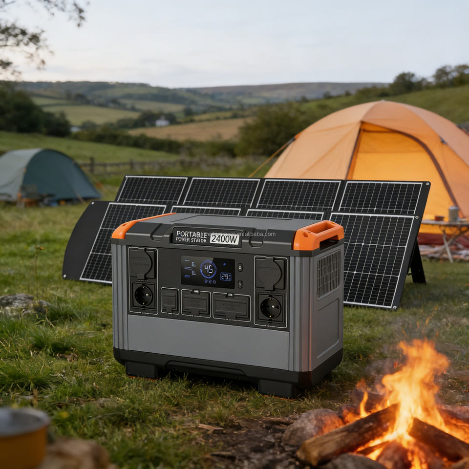 Station d'alimentation portable avec prise UK 2400W 2000Wh LiFePO4 à onde sinusoïdale pure pour la maison et le camping-car