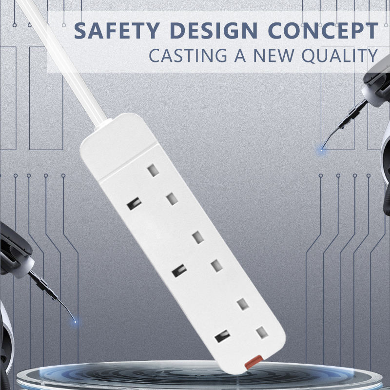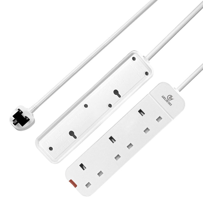 Prise de courant blanche Standard britannique à 3 sorties de 3 mètres, multiprise de protection contre les surtensions, prise d'extension électrique pour bureau