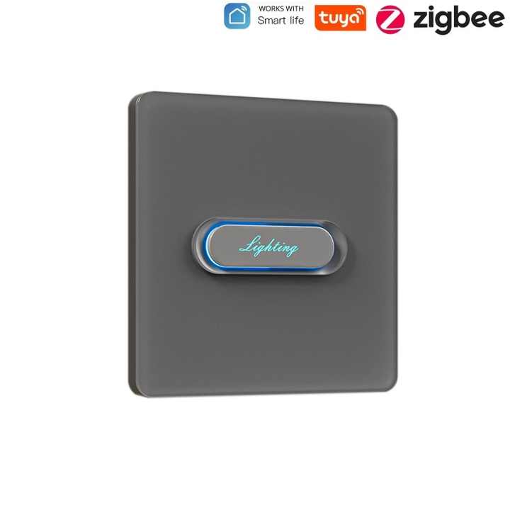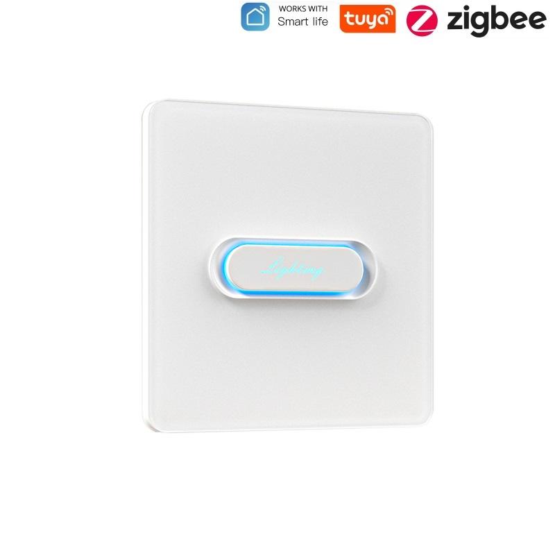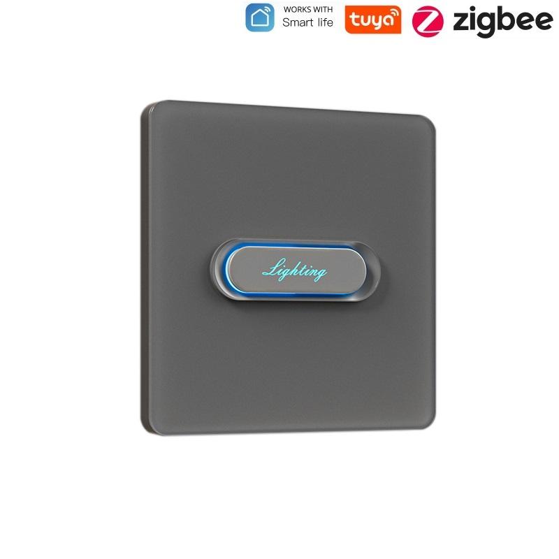 Interrupteur tactile Tuya Zigbee 1 bouton, panneau en verre blanc/gris, norme britannique, pour maison intelligente
