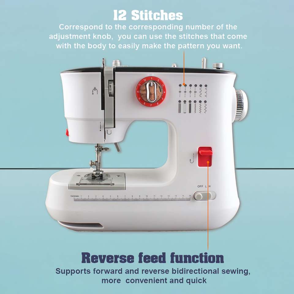 Stitch type:Straight line + curve, 12 kinds of stitches