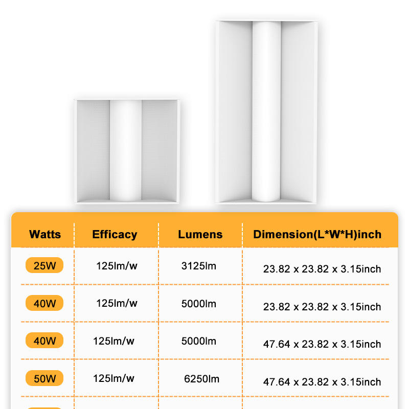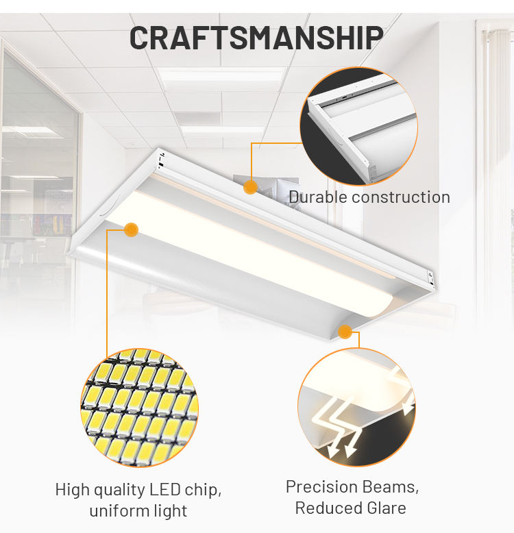 Plafonnier LED encastré UL 2x2 2x4 pieds en aluminium à panneau central, installation facile, pour entrepôts et couloirs