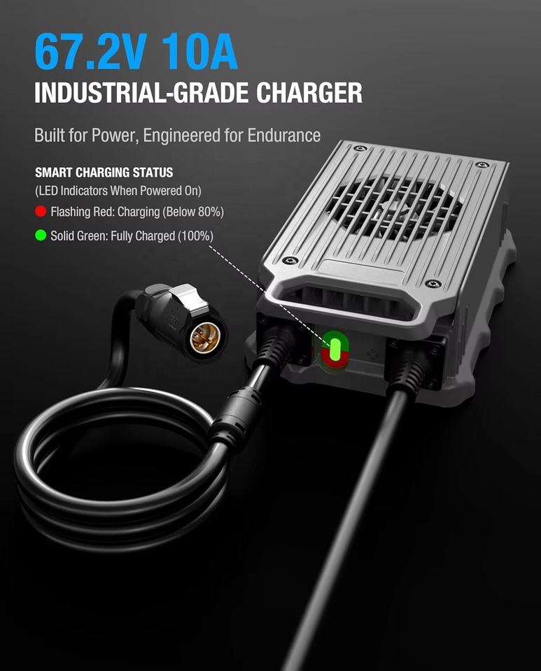 Chargeur rapide homologué UL & CE 67.2V 10A pour Segway Dirt EBike X260/Sur-Ron X/Surron Light Bee X Waterproof 60V Scooter Accessories