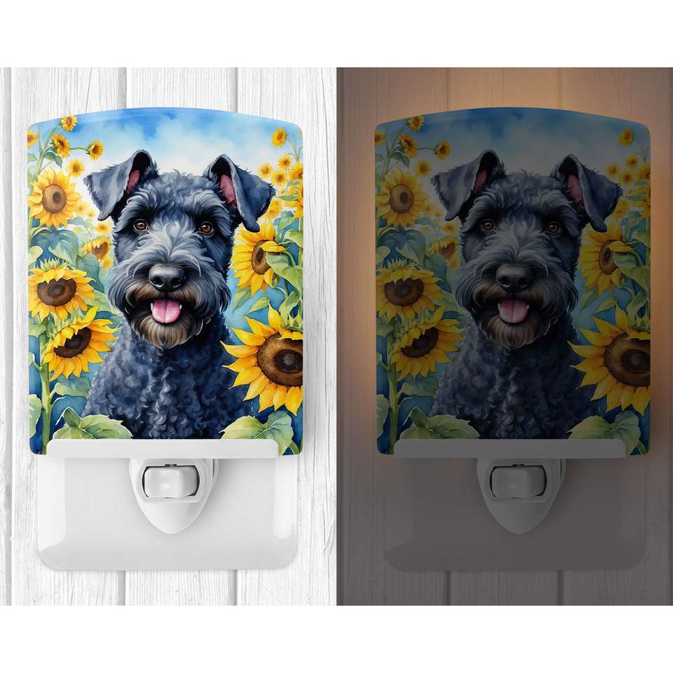 Certifié UL Nouveau Kerry Blue Terrier Tournesols Veilleuse en céramique compacte 6x4x3 multicolore pour chambre à coucher couloir cuisine