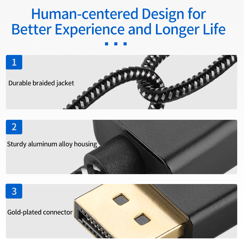 Câble de connexion DisplayPort ULT-unite 2m vers 4K 60Hz avec connecteur plaqué or, boîtier en alliage d'aluminium et blindage combiné