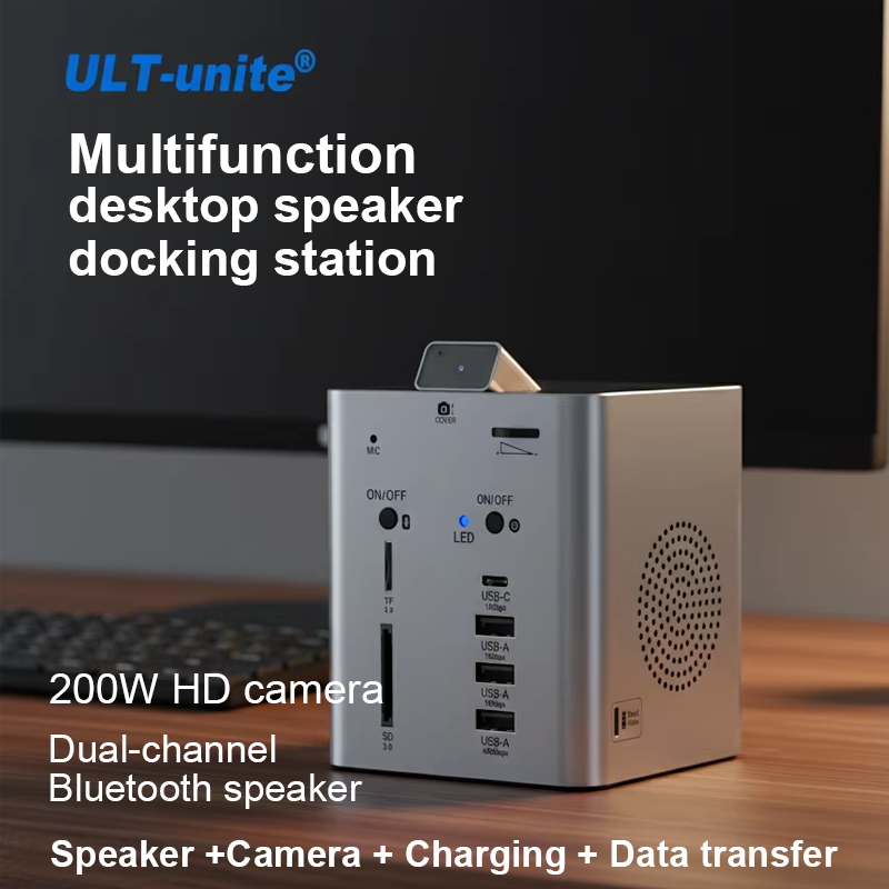 Station d'accueil tout-en-un ULT-unite avec haut-parleur, caméra HD, lecteurs de cartes de transfert de données et chargeur pour vidéoconférence et diffusion en direct