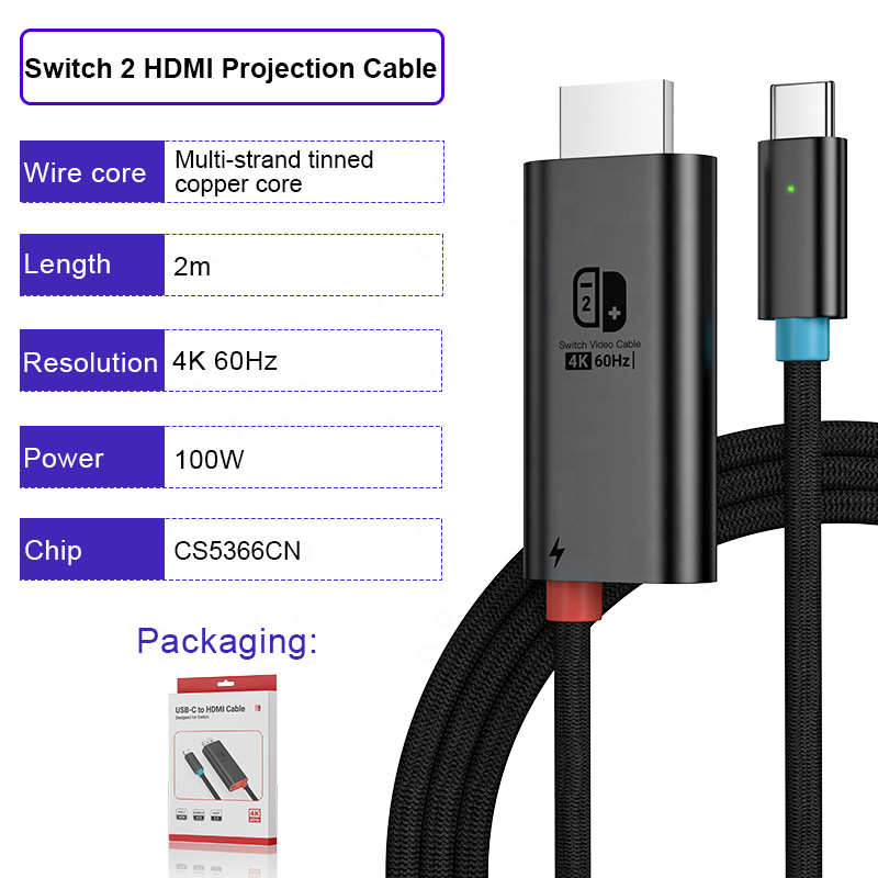 Câble adaptateur USB Type C vers HDMI ULT-unite Switch 2 Co-branded Color 2M PD100w 4K 60Hz pour Nintendo Switch, téléphone, ordinateur, tablette