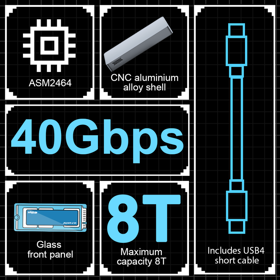 Boîtier de disque dur USB4 haute vitesse ULT-unite en aluminium prend en charge les SSD M.2 40 Gbps NVME 8 To