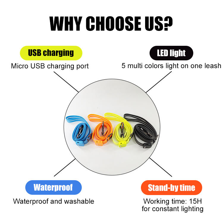 Laisse pour chien lumineuse RVB personnalisée en gros par UMIONE, avec rubans, en PVC rechargeable et écologique